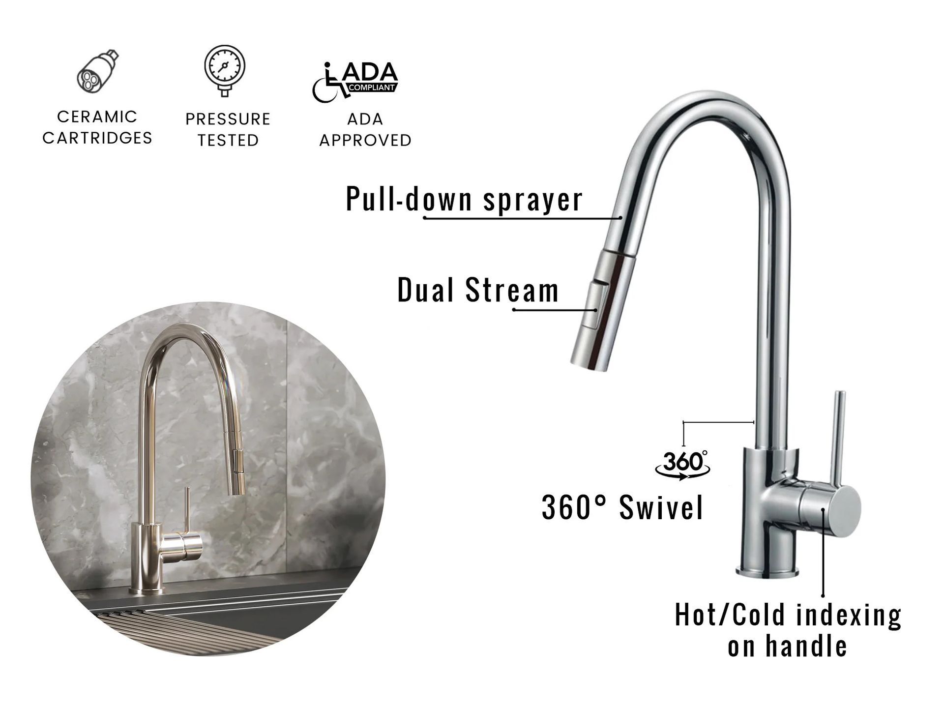 Contact us now to discover the perfect sink and faucet for your kitchen.